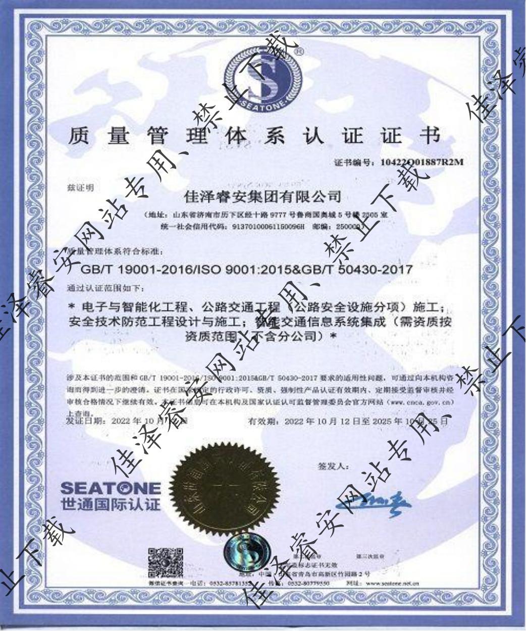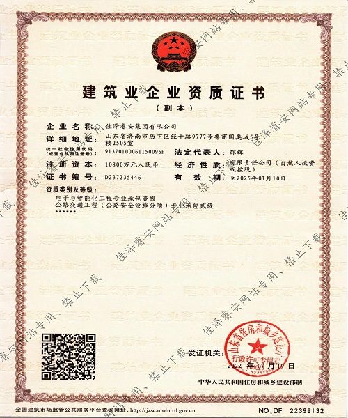 安全技術(shù)防范工程設(shè)計(jì)施工等級(jí)確認(rèn)登記證書